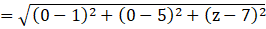 Distance between R(0, 0, z) and A(1, 5, 7) is RA,