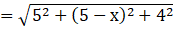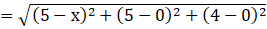Distance between B(5, 5, 4) and D(x, 0, 0) is BD,