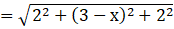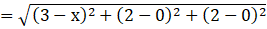Distance between A(3, 2, 2) and D(x, 0, 0) is BD,